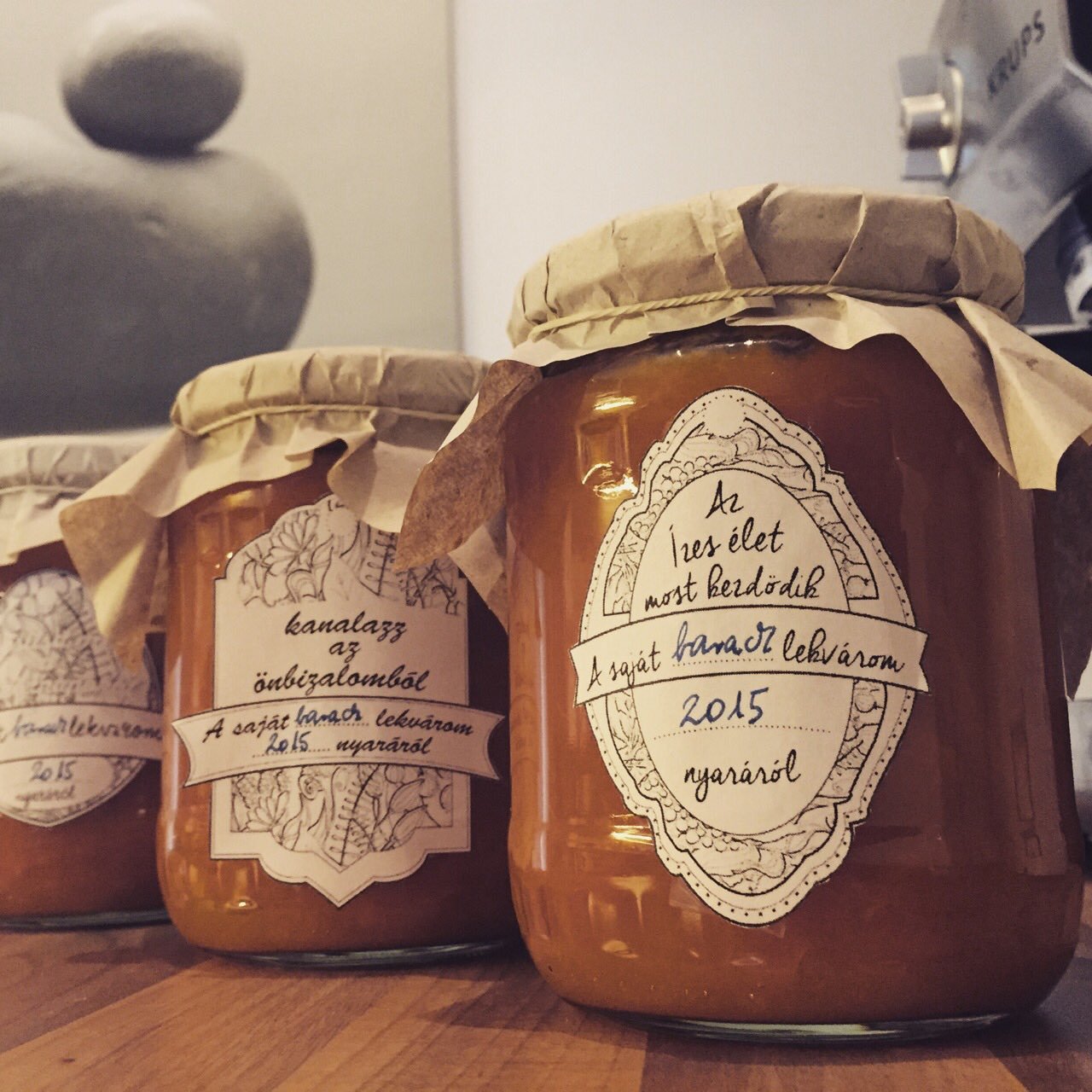 Láthatjátok a képen, baj nem lett belőle! Szép üvegbe került, gyönyörű címkével (www.vous.hu érdeme). Legszívesebben most minden finomságot eltennék, mondjuk maradt még pár üres üvegem… Kísérletezni is szeretnék ám, az erkélyen virágzik a levendulám! Segítsetek, tippeket szeretnék!