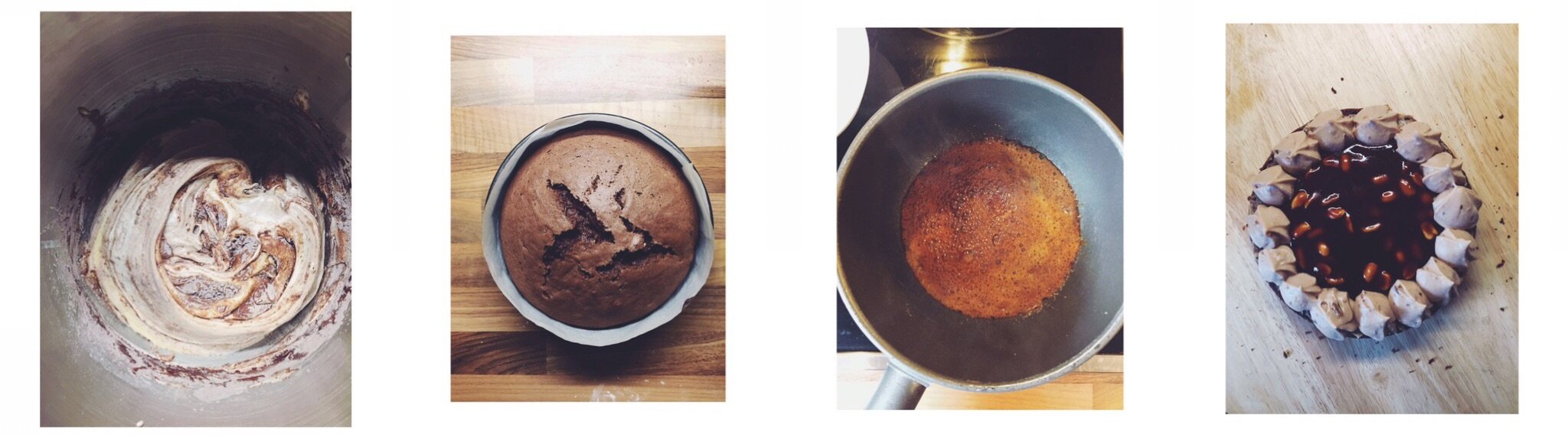 Kicsit sok és lágy lett a krémem, ezért a piskótalapok súlyuknák fogva oldalt full kinyomták majdnem az egész krémet, így szét kellett szednem az egész tortát és kiszednem a fölös krémet. Mint valami kismalac, úgy néztem ki, eléggé káosz volt a reggelem. Délre fejeztem be, reggel 6-kor kezdtem.