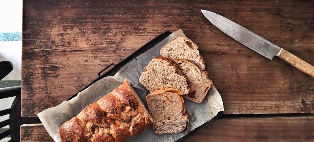 Tészta darabolása, fonás. A megkelt tésztát lisztezett pultra borítom, majd 3 részre osztom. Egyenként gömbölyítem, ekkor finoman átgyúrom, letakarom őket és további 20-30 percig kelesztem. A tésztabucikat kinyújtom téglalap alakúra (körülbelül 30x15cm). A töltelék teljesen opcionális. A kinyújtott lapokon egyenletesen eloszlatom a tölteléket, feltekerem, hármas fonással befonom, majd sütőpapírral kibélelt kenyérsütő-formába teszem.