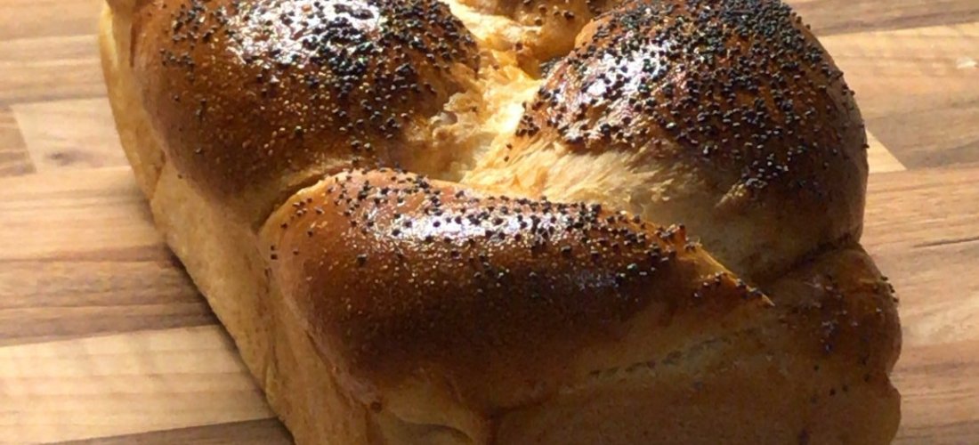 Kelesztés. 2 órán keresztül, tállal leborítva a pulton kelesztem, majd 3 részre osztom. Ekkor ismét kel 30 percet, majd kicsivel nagyobb szálakká sodrom, mint a formakenyér-sütő hossza és hármas fonással összefonom. Finoman beillesztem a sütőpapírral bélelt formába, majd további 50 percet kelesztem.