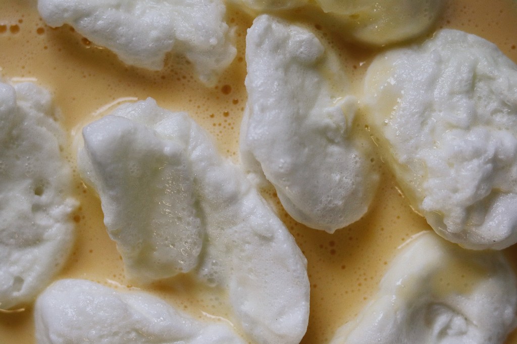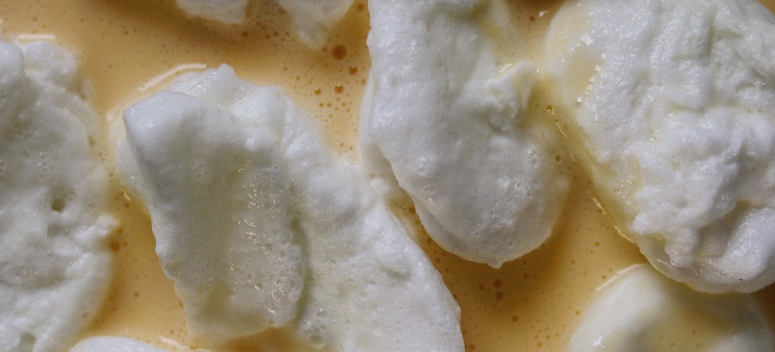 Édes, krémes, tojásos sodó, ami halványsárga bársony-köddel bevonja kanalad. Szádhoz emeled, becsukod a szemed és mosolyogva kóstolod vele a kettészelt tojásfehérjehab-felhőt.