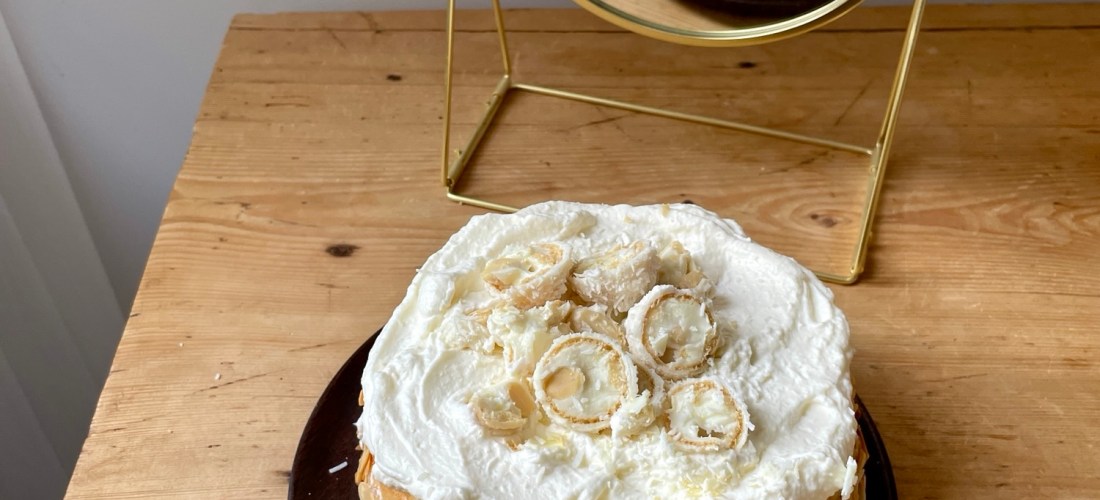 Mascarponés kókuszos belső, habos lágy kókuszkrémmel, Raffaelóval és pirított mandulával, ah. Mennyei!