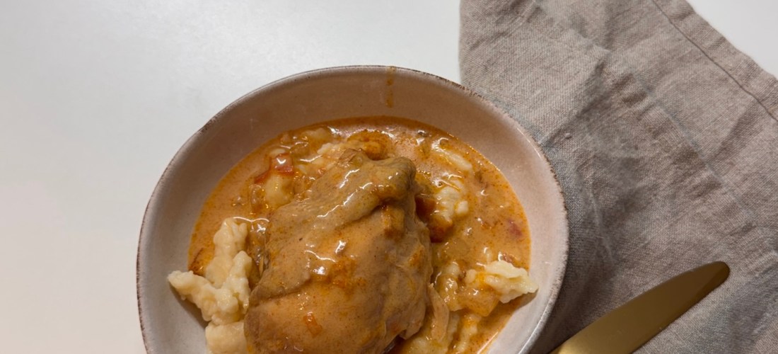Annyira megkívántam, hogy muszáj volt egy nagy adaggal készítenem. Reggel leszaladtam a kisboltba friss csirkecombokért, ah isteni finom lett! Természetesen készült hozzá nokedli is, mert úgy az igazi! Jó sok szafttal, mennyei lett.