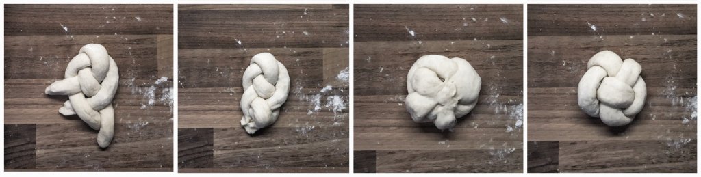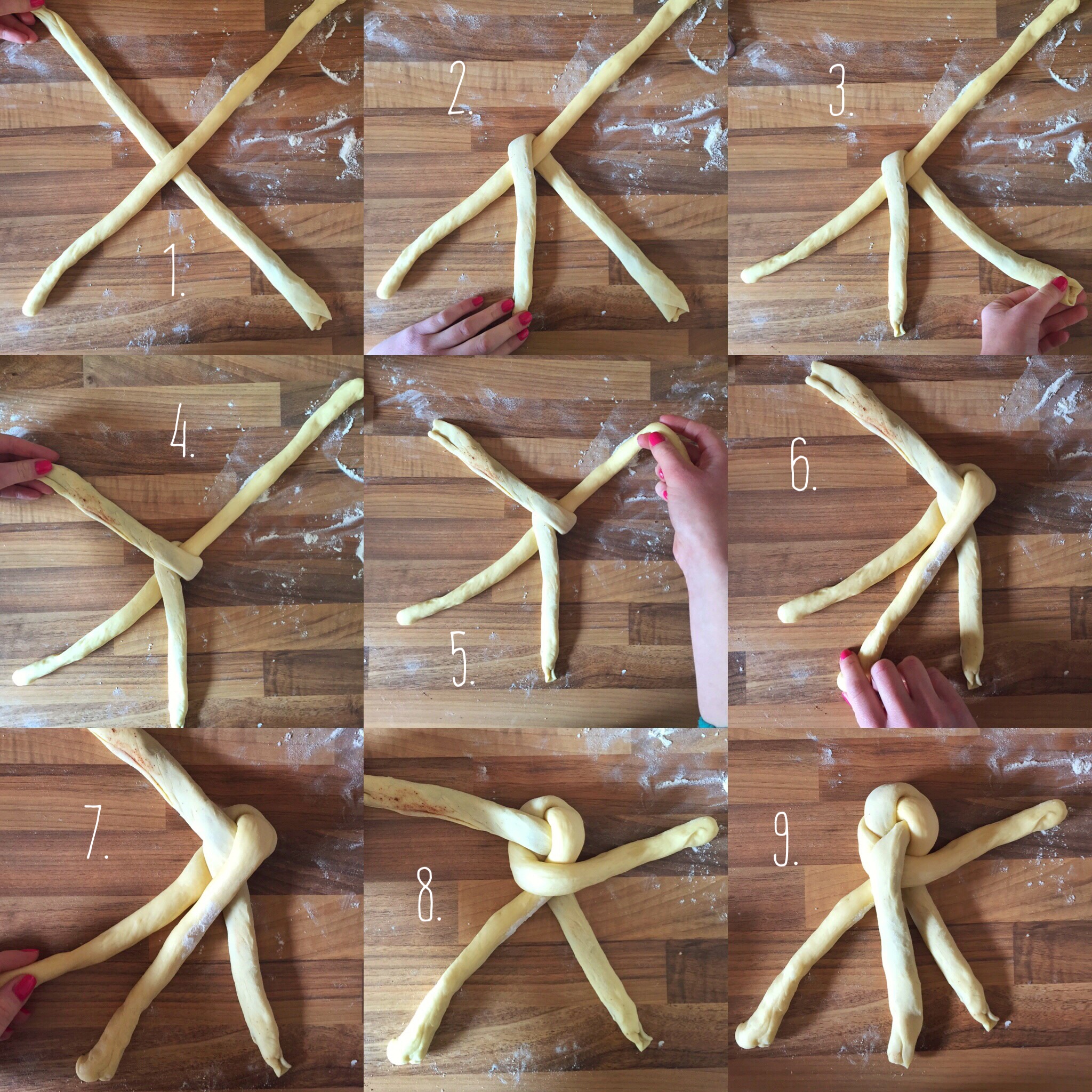 Jobb másodikat bal fölülre, jobb elsőt középre, bal másodiknak. Bal másodikat jobb fölülre, bal elsőt középre, bal másodiknak. Ha 500 g lisztből készítek kalácsot, én 6 db-ra osztom, így d db közepes kb 300 grammos kalácsom lesz.