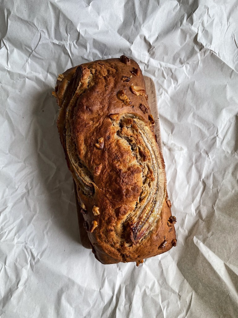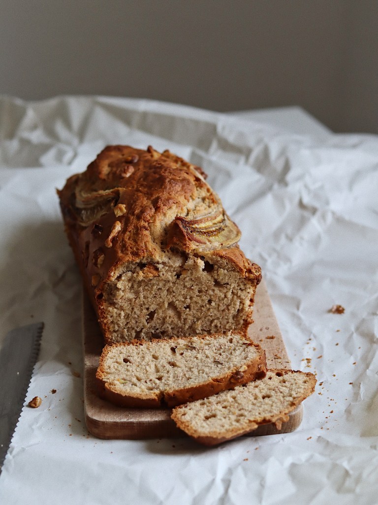 A recept annyira pikk-pakk gyors, hogy azzal kezdtem: előmelegítettem a sütőt 180 fokra. Két banánt villával összenyomtam, robotgépem krémkeverő karjával elkevertem benne a tojást, az olajat, a tejet, a kristály és a vaníliás cukrokat. Egy másik tálban jól összekevertem a lisztet a sütőporral, sóval, fahéjjal és a dióval, majd a banános részhez adtam és csomómentesre kevertem. A masszát spatulával átkapartam a kiolajozott / vajazott formába, tetejére rátettem a kettévágott harmadik banánt, megszórtam dióval és 180 fokon (alsó-felső) kb 50-60 percig sütöttem, néha rákapcsoltam a légkeverést.