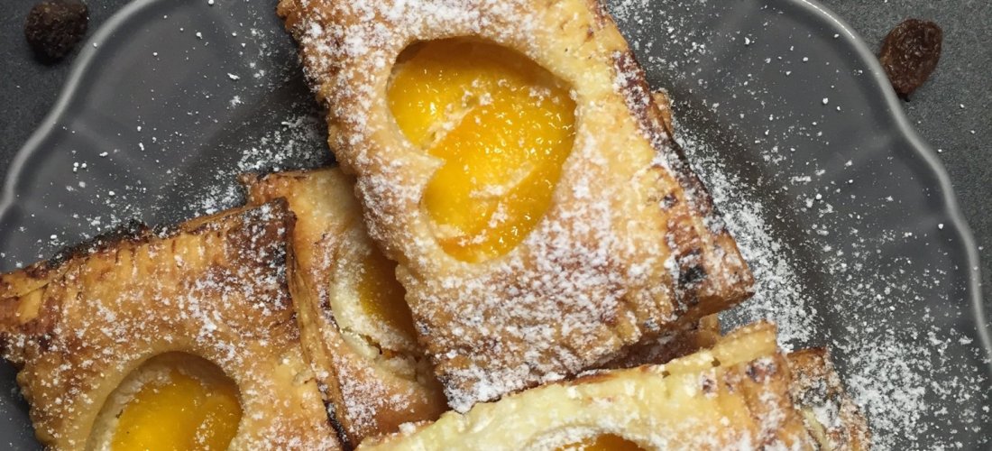 Langyos tejben elkeverünk 1 kávéskanál porcukrot, belemorzsoljuk az élesztőt és 5-7 perc alatt letakarva hagyjuk felfutni. Kimérjük a lisztet, elkeverjük a kristálycukorral és egy csipet sóval. Beleöntjük a felfutott élesztőt, az egyik tojást és a joghurtot. Szép fényes tésztává dagasztjuk, majd letakarva a duplájára kelesztjük 40-50 perc alatt. Miután megkelt, 8 egyenlő részre osztjuk, egyenként gömbölyítjük, majd 15-20 percig letakarva pihenni hagyjuk. Egyesével kinyújtjuk őket kb 18 cm-esre. A tetejére vékonyan felszeletelt vajat teszünk, majd rátesszük a második kinyújtott kört is. Így haladunk végig mind a 8 tésztán. Az utolsó tetejére már nem kerül vaj, letakarva hűtőbe tesszük 45 percre. Lisztezett deszkán vékony, 46 cm-es körré nyújtjuk és 12 szeletre vágjuk. Megtölthetem őket sajttal, nutellával, csokival, pudinggal, lekvárral. Nekem 3 baracklekváros kett, kb 1 evőkanállal tettem a szélesebb részébe egy csíkba, majd feltekertem. Sütőpapírral bélelt tepsire tesszük és letakarva 40 percig kelesztjük őket, majd a kelesztés végén lekenjük kicsit felvert egész tojással és 180 fokra előmelegített (alsó-felső) sütőben 25-30 perc alatt megsütjük.