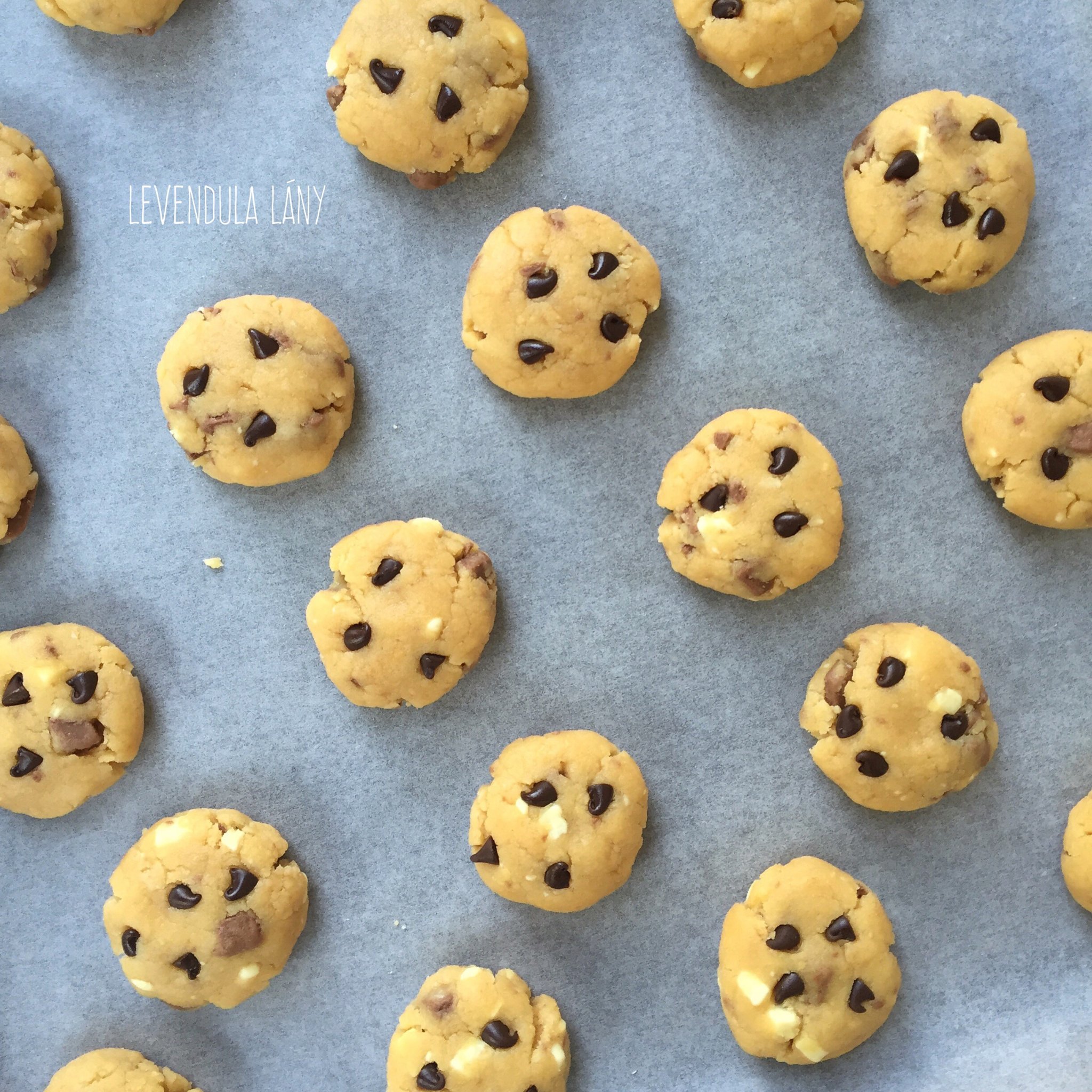 Az étcsokoládét a vajjal mikróban felolvasztom. (Félpercenként kiveszem és megkeverem.) A cukrot a tojással fehéredésig keverem, belekeverem a közben langyosra hűlt csokis vajat és a vanília aromát. Kimérem a lisztet, hozzáadom a sütőport és a szódabikarbonát, majd a lisztes keveréket belekeverem a csokis masszába. 170 fokra előmelegítem a sütőt. Sütőpapírral bélelt tepsire kb. 1 evőkanálnyi halmokat teszek két kanál segítségével. Ha felmelegedett a sütő mehet be és 10-11 perc alatt gyönyörűen szétrepedeznek és megsülnek.