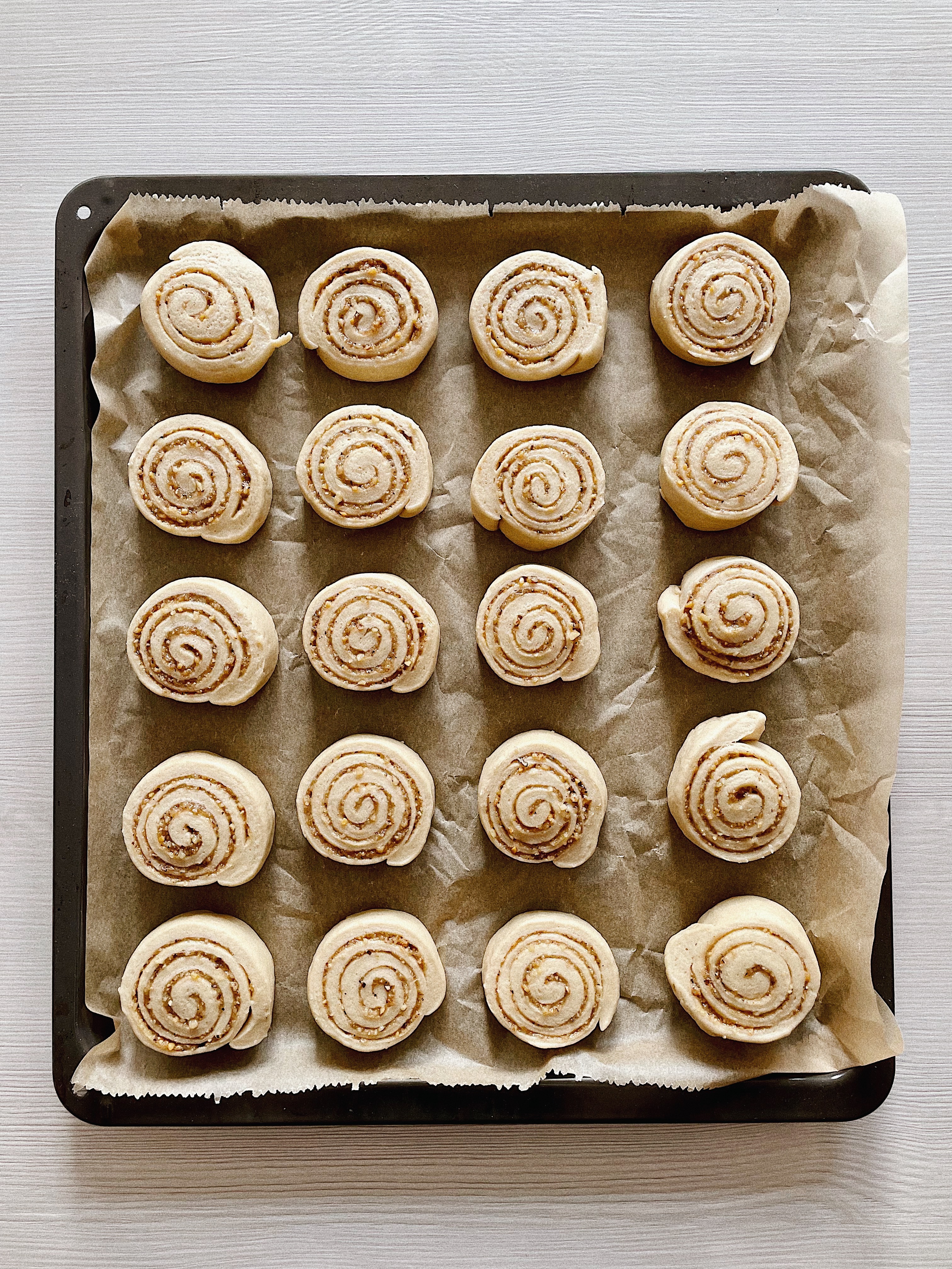 A cruffin eredeti jelentését tekintve a croissant és a muffin ötvözete, tehát egy kelt leveles tészta eszméletlen mennyiségű vajjal, muffin formába tekerve, úgy kisütve és sokszor még isteni finom krémekkel megtöltve. Ez annyira jól hangzik, hogy nyilván már sokszor szemeztem vele és tervezek is készíteni hasonlót. Na de a tekeréses technika miatt gondoltam, hogy így nevezem el, nem pedig simán aranygaluska muffinnak. Oké ez így? Remélem!🥰