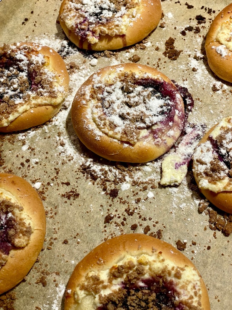 Reggel még fahéjas csigának indult a gondolat, aztán a boltba érve megfogant bennem, hogy úgy ennék valamilyen túrós-gyümölcsös pihe-puha szaftos kelt kis péksütit. Na pontosan így született meg ez a mennyei finom, felhő puha túrótöltelékes, fahéjas morzsás és áfonyás ökörszem receptem. Isteni lesz vacsorára és holnap reggelre!✨