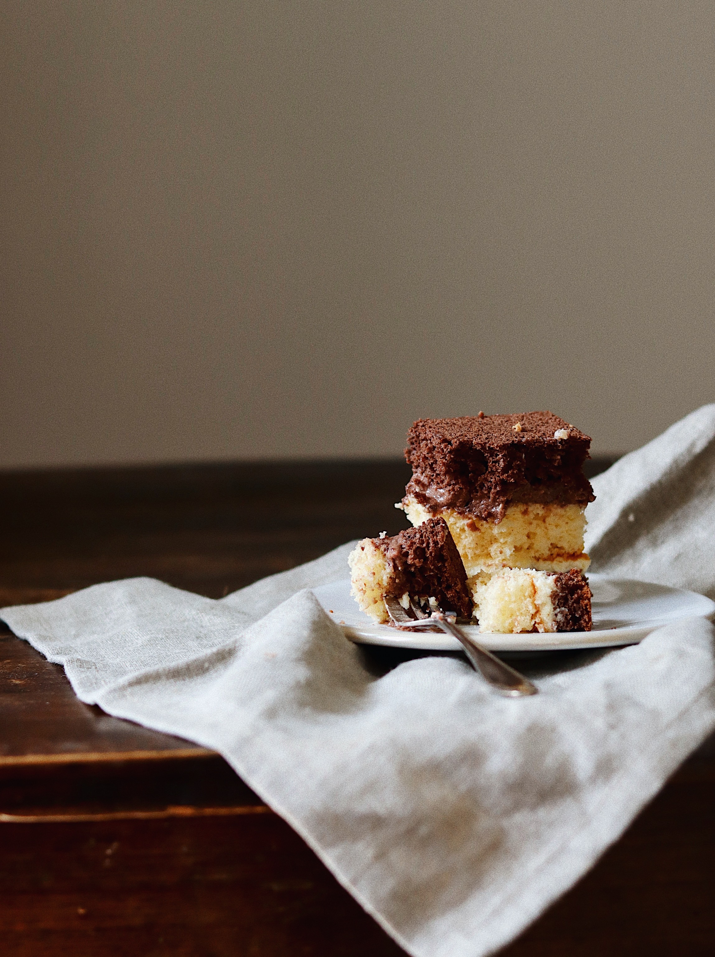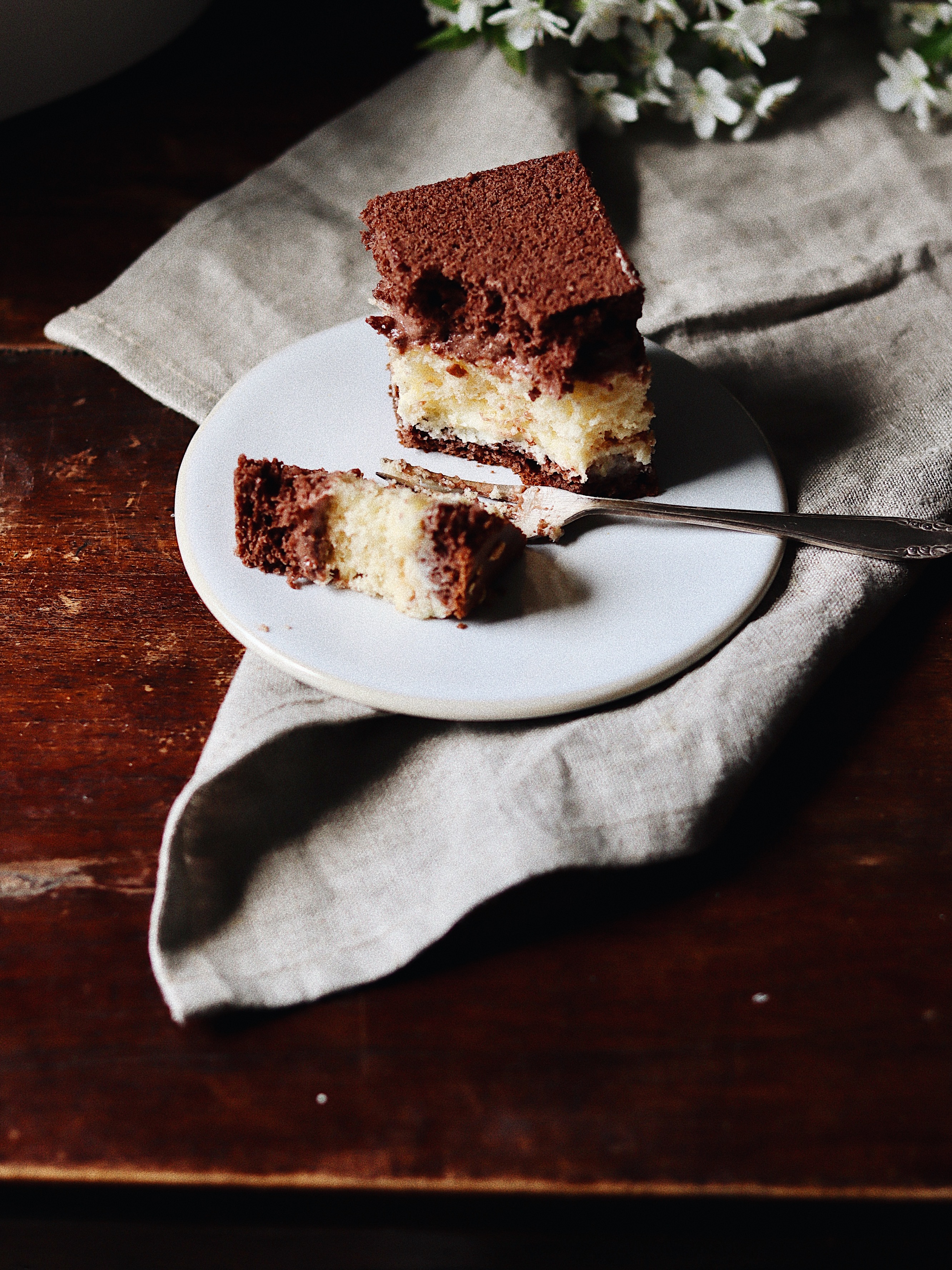 Ismét egy családi receptet hoztam, ami nagyon sűrűn kerül elő nálunk és nincs mese, megint csak azt kell, hogy írjam, hogy nagyon-nagyon hamar képes morzsáig fogyni és hipp-hopp hűlt helye sem lesz. Egy elképesztően puha vizes piskóta alapot képzeljetek el, két réteg kakaós és egy sima változatban, amit krémes, vaníliás vajkrémmel töltünk.