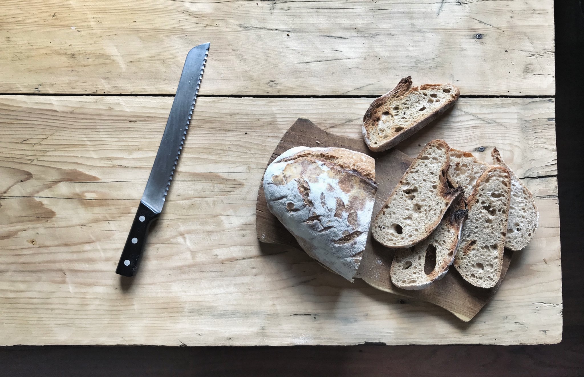 A kisült kenyeret rácson hagyjuk kihűlni. Ami bennünket illet, szoktunk várni 5-6 órát a szeleteléssel, aztán jön a már-már szinte szertartásszerű kóstolás, leheletnyi vajjal és sóval. Sütés után minimum 1 teljes napig kint van a pulton, nincs letakarva semmivel se, csak ha megvágtuk, a vágott oldalára fordítva pihen. Ezután vagy felszeleteljük az egészet és a háromnegyede zsupsz költözik is be a fagyasztóba, vagy nem szeleteljük csak zacsiba tesszük. Fagyasztás után a szeletek a pulton pár perc alatt kiengednek.