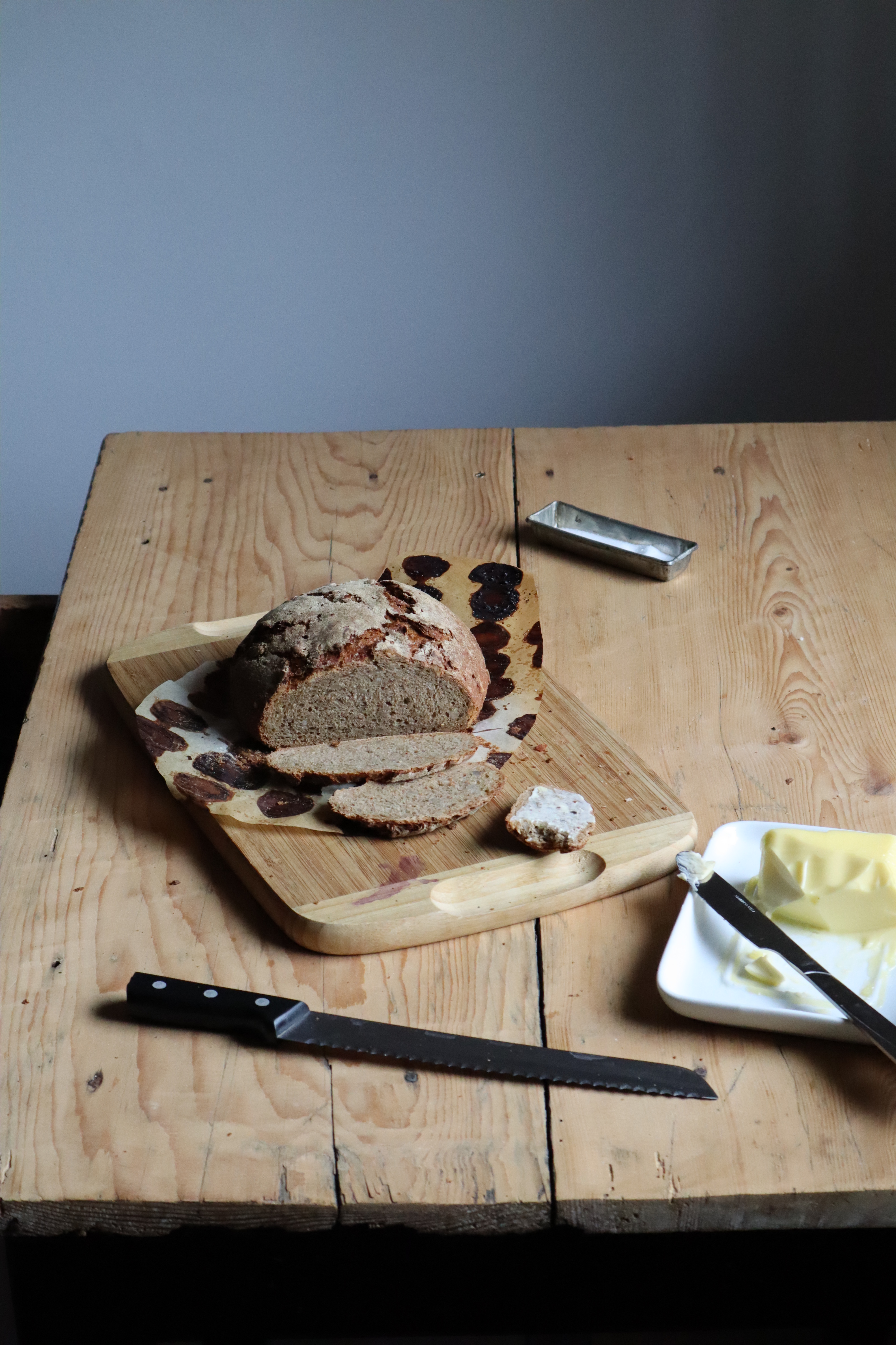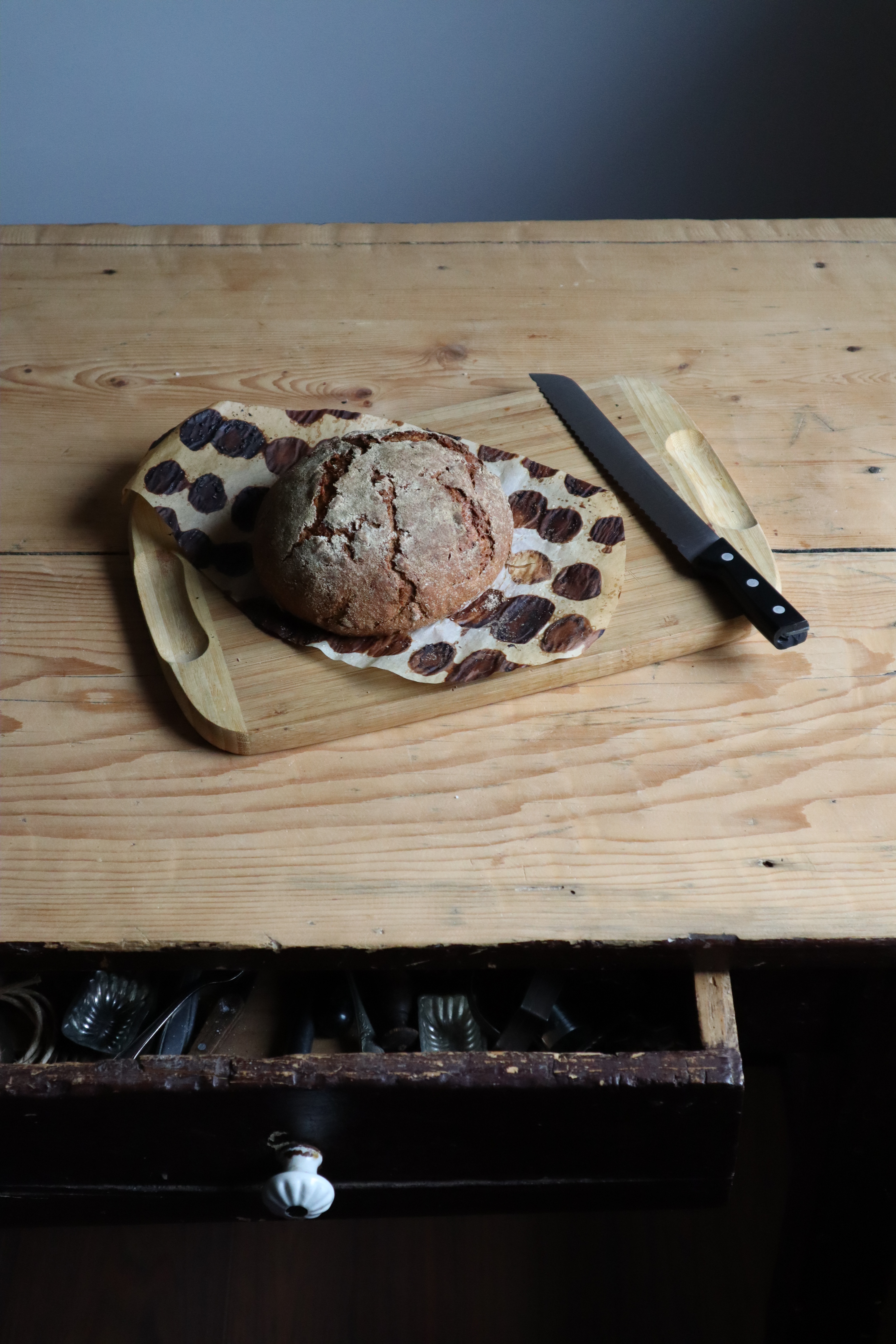 Erre úgy konkrétan nincsenek szavak. Lefotóztam minden szögből, majd fogtam a kést és megszegtem. Egyszerűen nem bírtam magammal, olyan illata volt és a fények is most voltak jók, hát megvágtam. Recsegő kenyérhéj, gyönyörű telt rozsos bélzet, csoda fűszeres illat. Végem volt már látványra is. Lőttem pár képet, majd gyors léptekkel szaladtam a vajért és mellé tettem a sót.