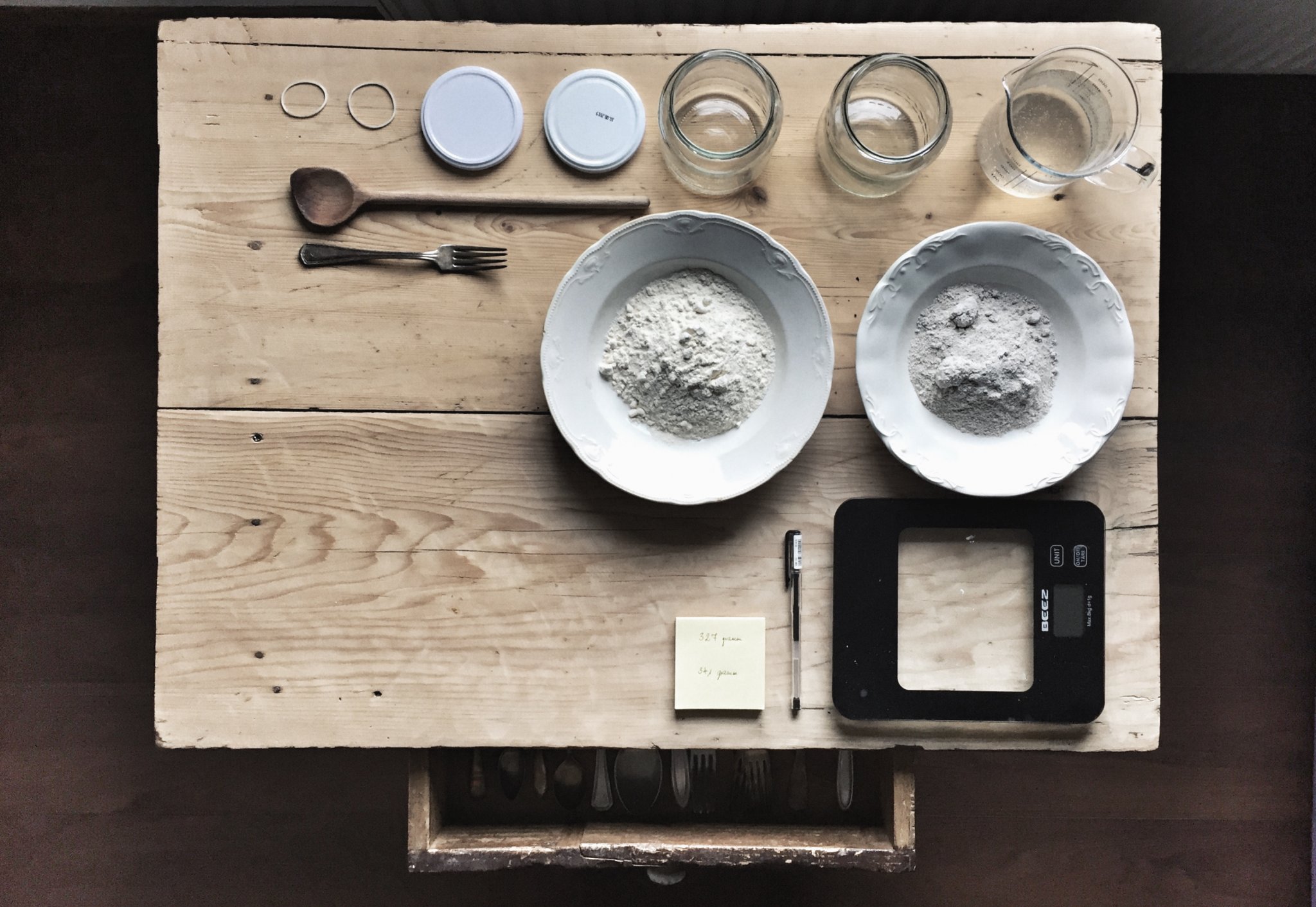 Miután megmértük, elmostuk és átforraltuk üvegünket, mérjünk bele 15 g teljes kiőrlésű rozslisztet és 15 g BL80 búzakenyérlisztet. Öntsünk bele 30 ml kézmeleg/minimálisan langyos vizet és keverjük össze egy fakanál végével. Lefedem a befőttesüveg tetejével, belehúzom egy téli sapkába, vagy konyharuhába bugyolálom, és 24-36 órán át érni hagyom huzatmentes szekrényben. Nem nyitogatom, nem piszkálom. Az első pár napban fontos rá nagyn odafigyelni.