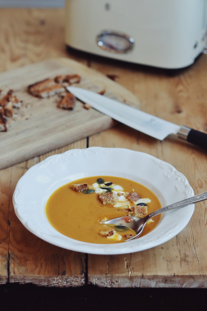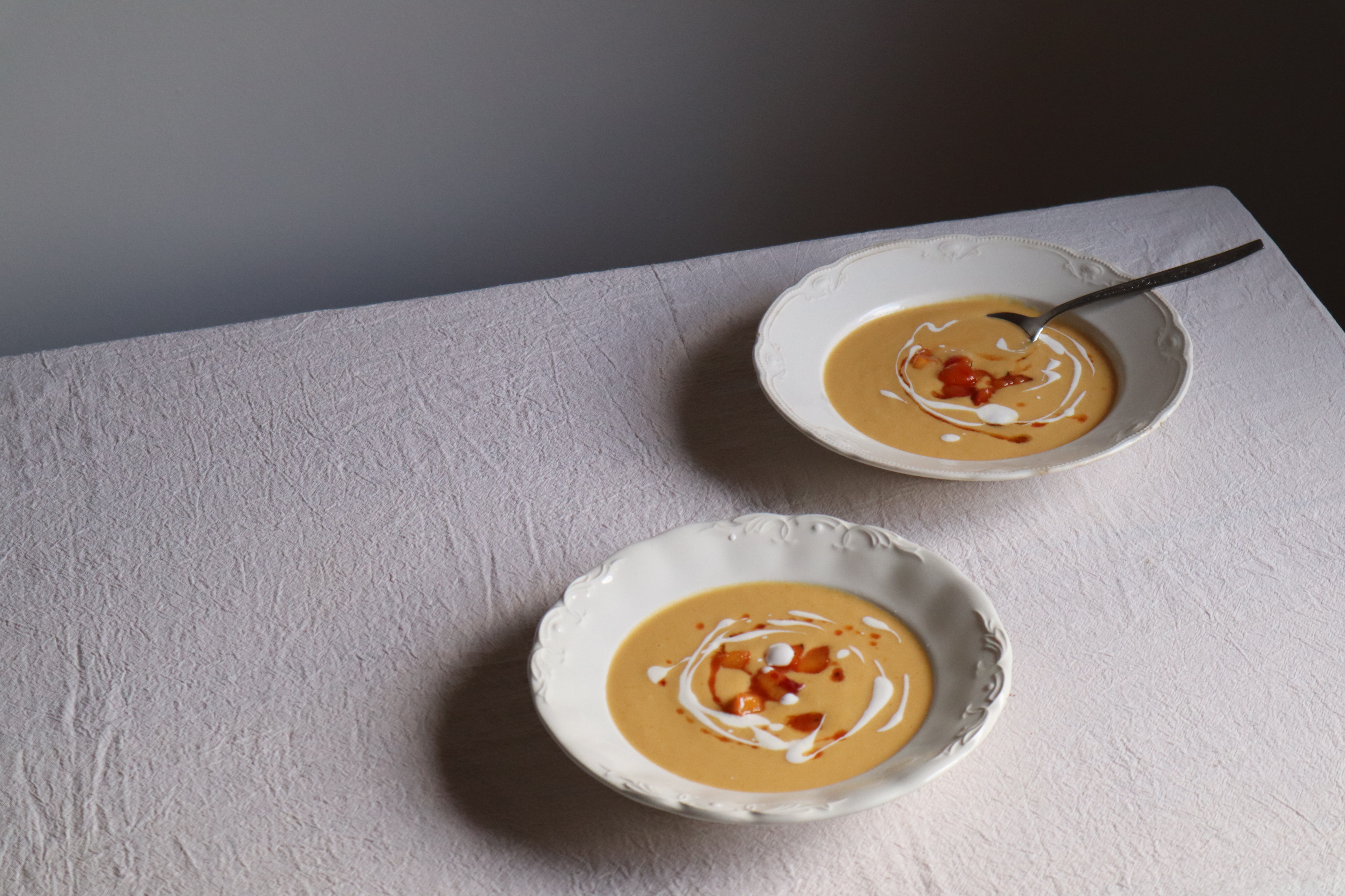 Fűszeres, halványan csípős sárgarépa-édesburgonya krémleves