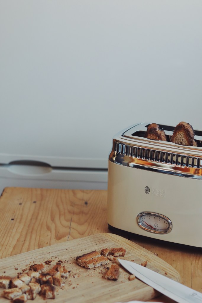 A magvak és a juhtúró mellett pedig egyértelműen mindig helyet kapnak a tányéron, a pirított kovászos kenyérkockák is, aminek az elkészítését most igazán különleges izgalom övezte, mert felavattam az új, gyönyörű Russell Hobbs krémszínű kenyérpirítóm.