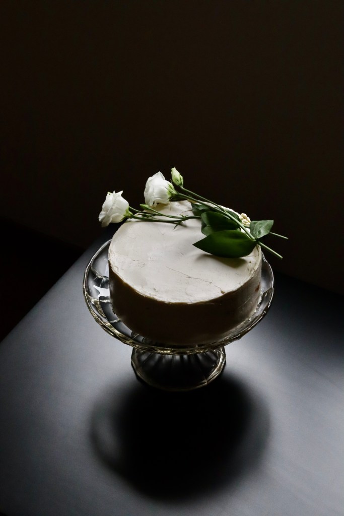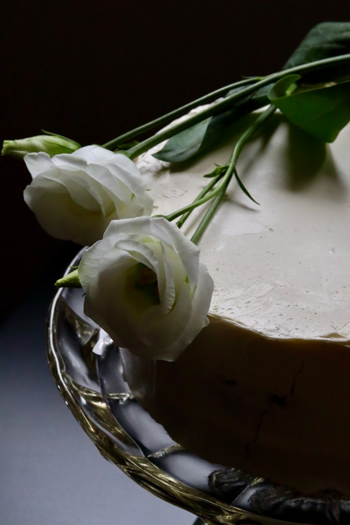 Alapvetően már így is szuper lenne a torta, de azért én beburkoltam egy szép vaníliapöttyös természetes módon elkent svájci vajkrémmel. A vajkrémhez a tojásfehérjét és a kristálycukrot alacsony lángon, folyamatosan kevergetve 55-60 fokosra hevítem, épp, hogy gőzölögni kezd, átöntöm egy fém tálba és kihűlésig verem, 19 fokosra (ekkor totál habcsók, akár ki is nyomhatnánk zsákból és kisüthetnénk annak), végül hozzáadom a vajat és addig keverem, amíg szép habos nem lesz. Beburkolom vele a hideg tortát. Hűtőbe tesszük, másnap szeleteljük, addigra összeér!