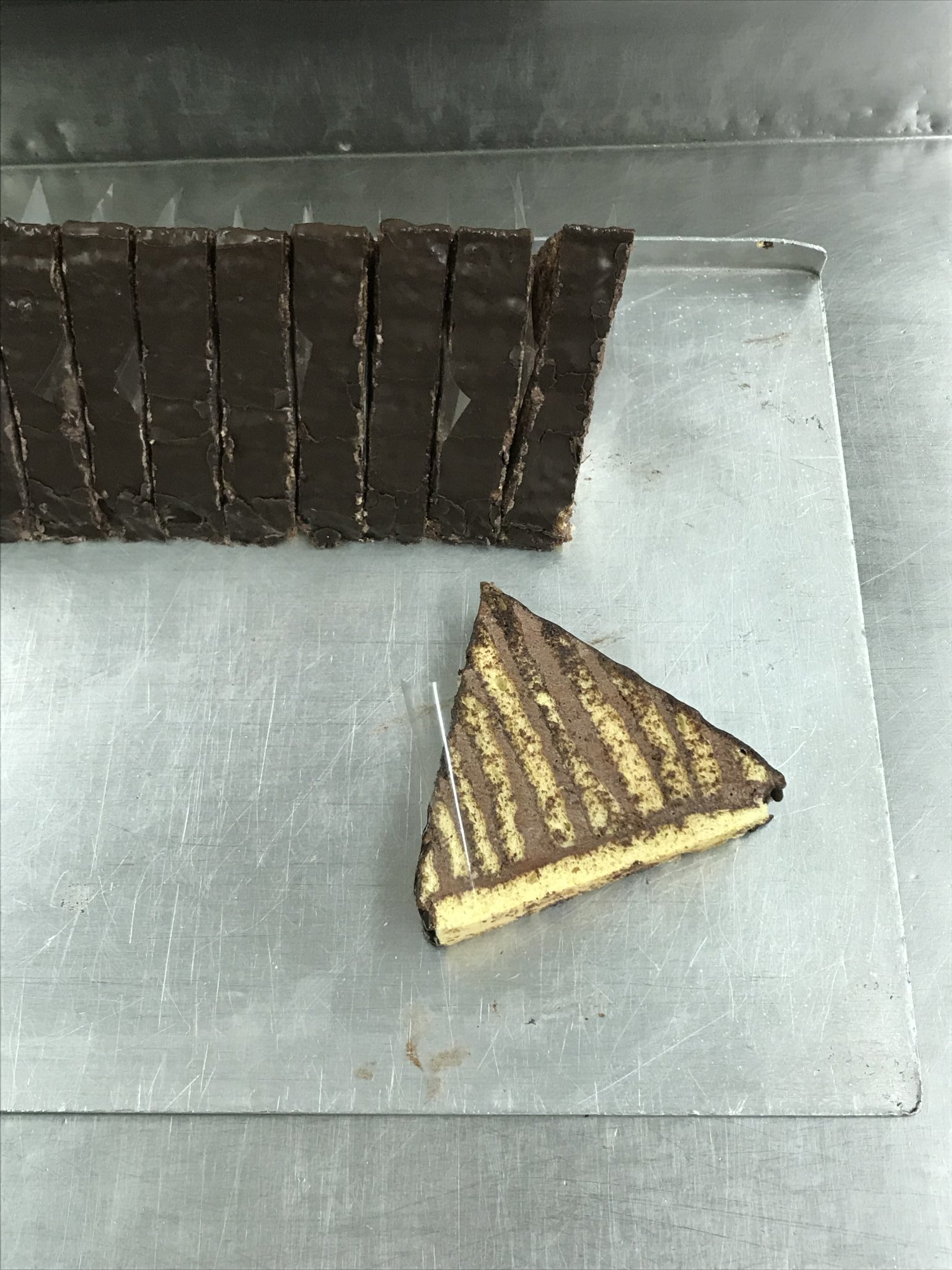 “Hú ez jó macera!” – hangzott el a legelső mondat tanárunk szájából a szelettel kapcsolatban, majd jött az “alapvetően bármiből és bárhogy készíthetjük” – igen konkrét mondat. Aztán végre kiderült, hogy vagy sima és kakaós felvertből fogjuk váltakozva összetölteni egy sima vajkrémes-sárgakrémes töltelékkel, vagy kevert omlós tésztából, mint a néró tésztája – fogjuk csináljuk. Még jó, hogy volt két tankönyvünk, mert megnéztük mind a kettőben, persze az egyik így, a másik úgy mutatta. Aztán megkérdeztük a másik csoportot, hogy ők hogy csinálják. Kabaré a köbön ami volt. Hát így lett végül röviden: 8 tojásból egy sima, 8 tojásból pedig egy kakaós felvertünk, egyszeres sárgakrémmel (250 ml tejből) kihabosítva (300 g vajjal, khm krémmargarinnal).