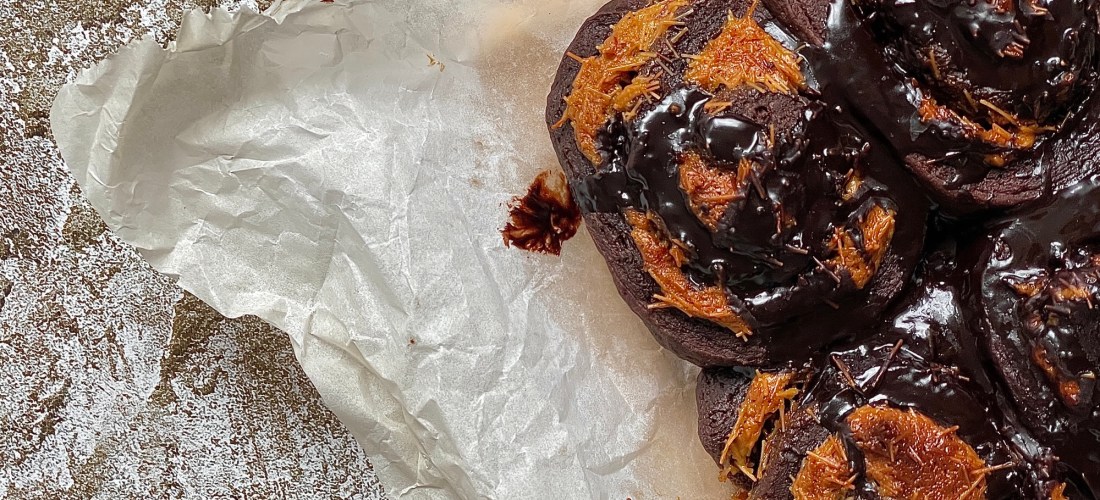 Szóval készítettem alapnak egy blundel tésztás kakaós kelt tésztát, azaz egy vajjal hajtogatott levelesebb kelt tésztát.