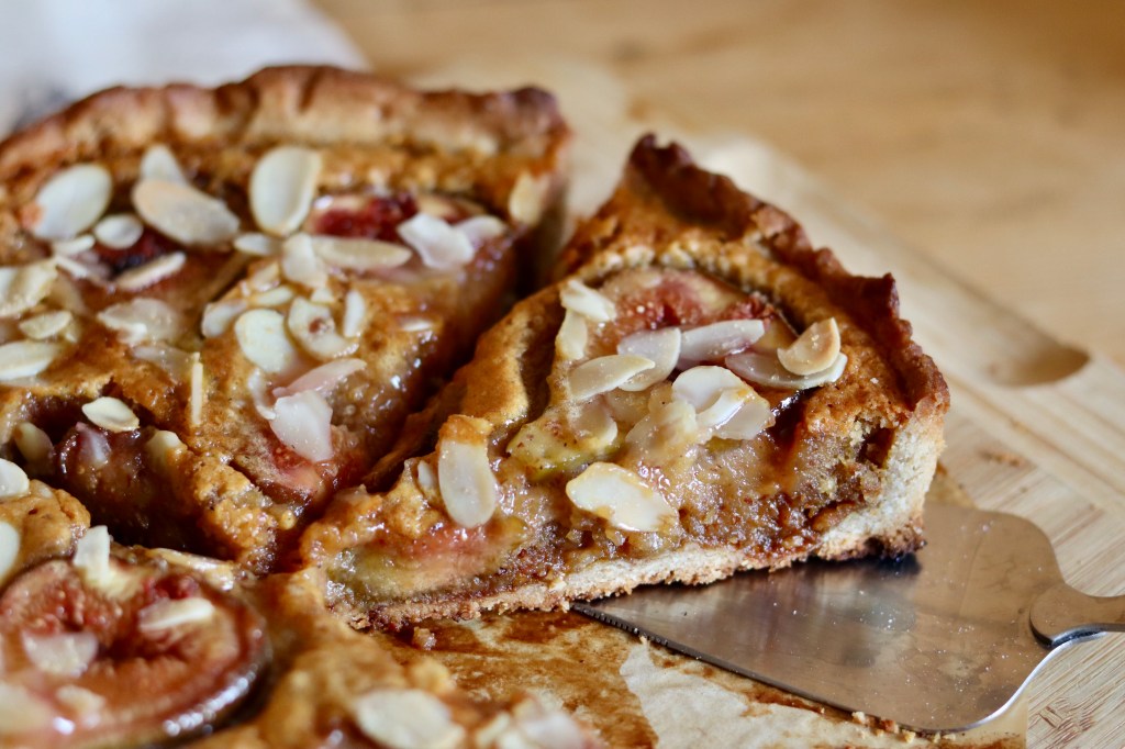 A tésztához a lisztet és a porcukrot átszitálom, a sóval és a sütőporral elkeverem. Gyorsan elmorzsolom benne a hideg vajat. A tojást kis edényben villával kicsit megkeverem, a nagyját a tésztához teszem és összeállítom vele, a megmaradt tojással majd a végén lekenem, addig mehet be a hűtőbe. Ha gombóccá gyúrtam a tésztát, 30 percre hűtőbe teszem. A töltelékhez meghámozom, kicsumázom a körtéket és az almákat. Felszeletelem vékony 2-3 mmes szeletekre. Megolvasztom a vajat, rádobom őket, ráöntök egy kis leheletnyi fehérbort, cukrozom, citromozom, fűszerezem. Pár percig pirítom: ne legyen puha, éppen csak puha, de még jó roppanós! Ekkor elzárom alatta a gázt és a keksszel bekeverem, besűrítem. Félreteszem hűlni, néha átkavarom. A tésztát 2/3-ad, 1/3-ad arányban elosztom (pontosan: 318 g – 159 g). Nagyobb részét kinyújtom, a sütőpapírral bélelt forma alját és oldalát kibélelem vele. Tetejére sütőpapírt és vagy rizzsel, vagy szárazbabbal lenyomom és 180 fokos sütőben 10-15 perc alatt elősütöm. Kicsit kihűtöm, majd jöhet bele a töltike. A tetejét is kinyújtom és díszítem, 170 fokra előmelegített sütőben (alsó-felső) 45-55 perc alatt megsütöm.