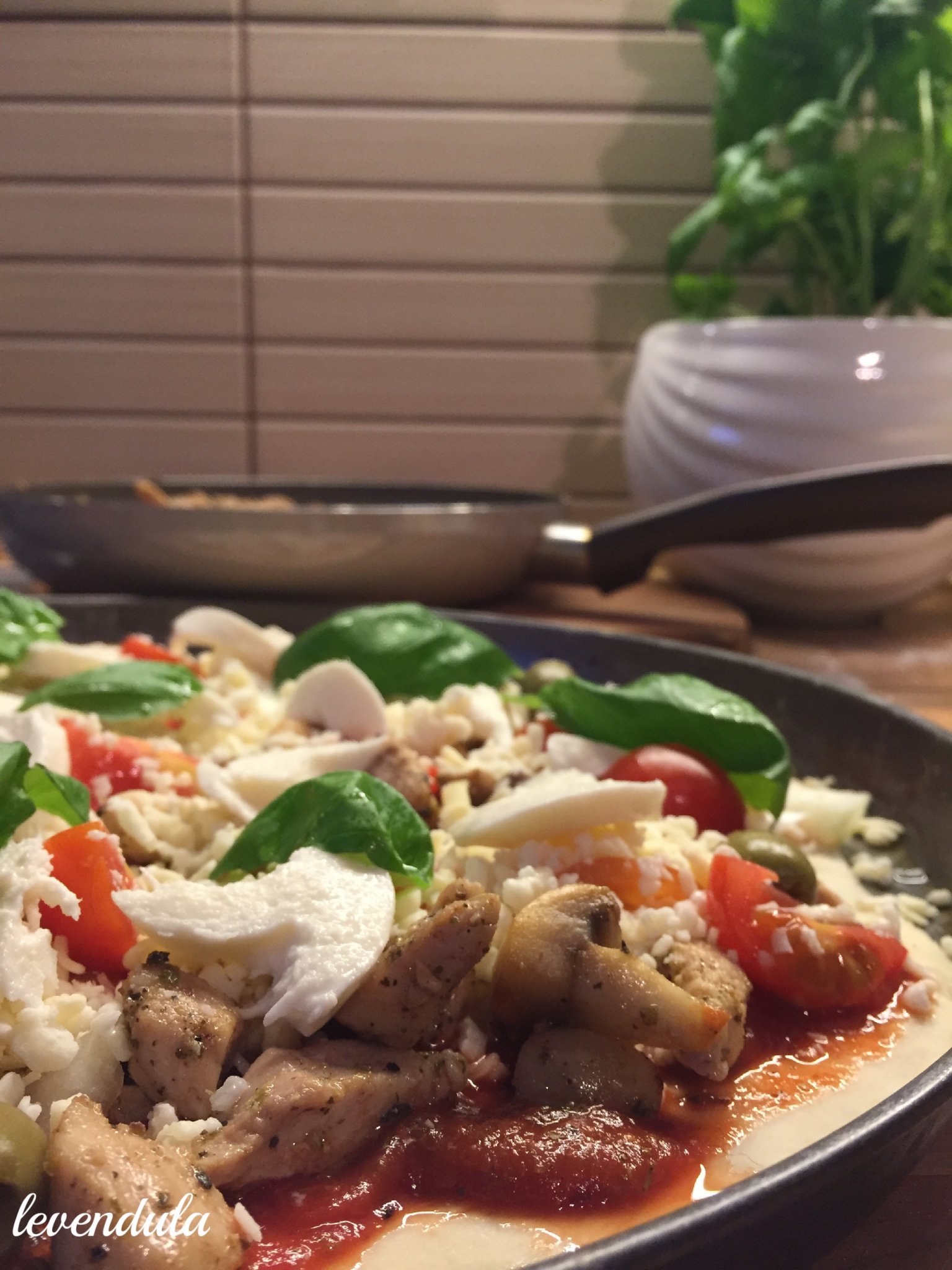 - A feltét variálható. Nálam most egy paradicsomszószos alapra kerültek rá a finomságok (sűrített paradicsom, só, bors)