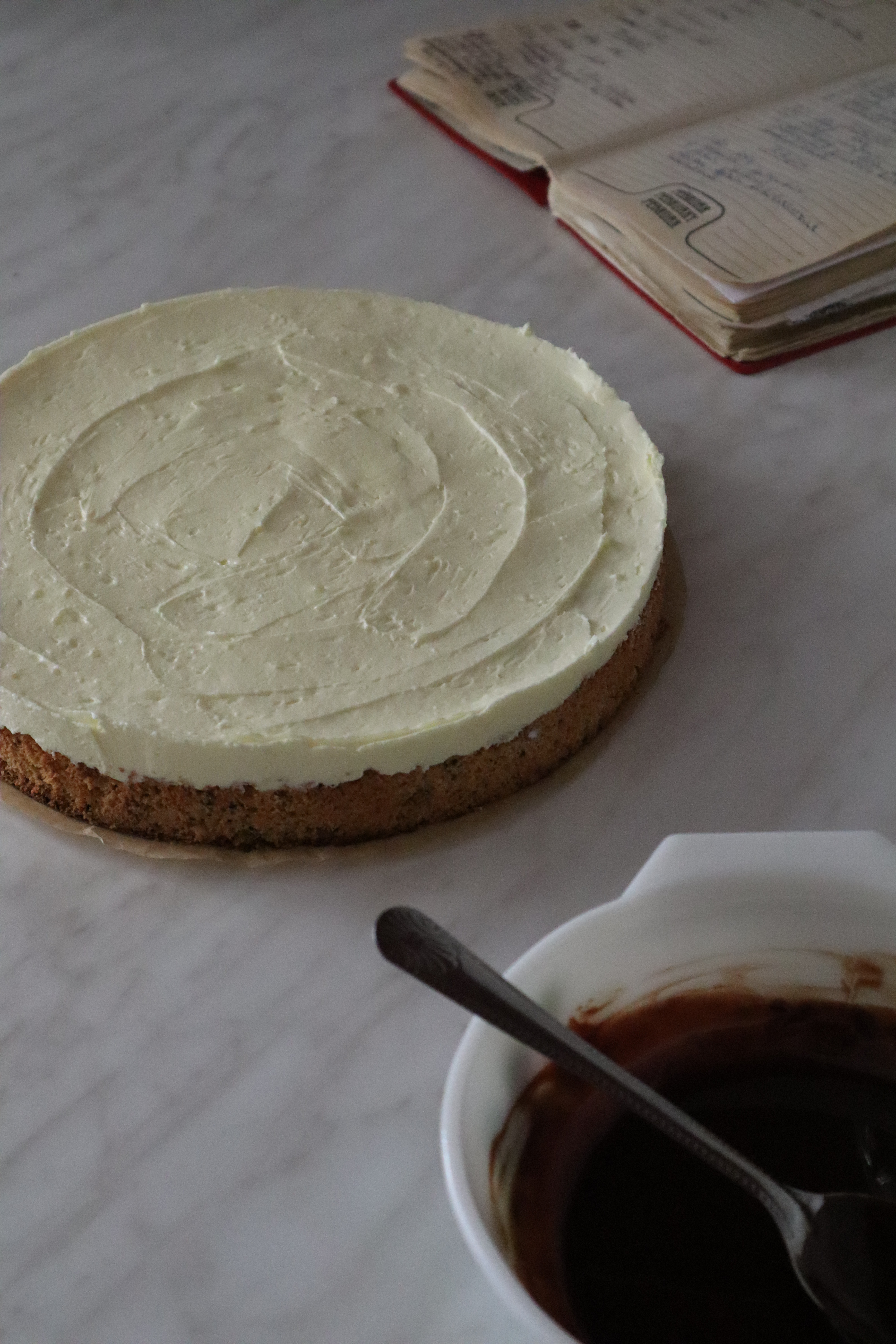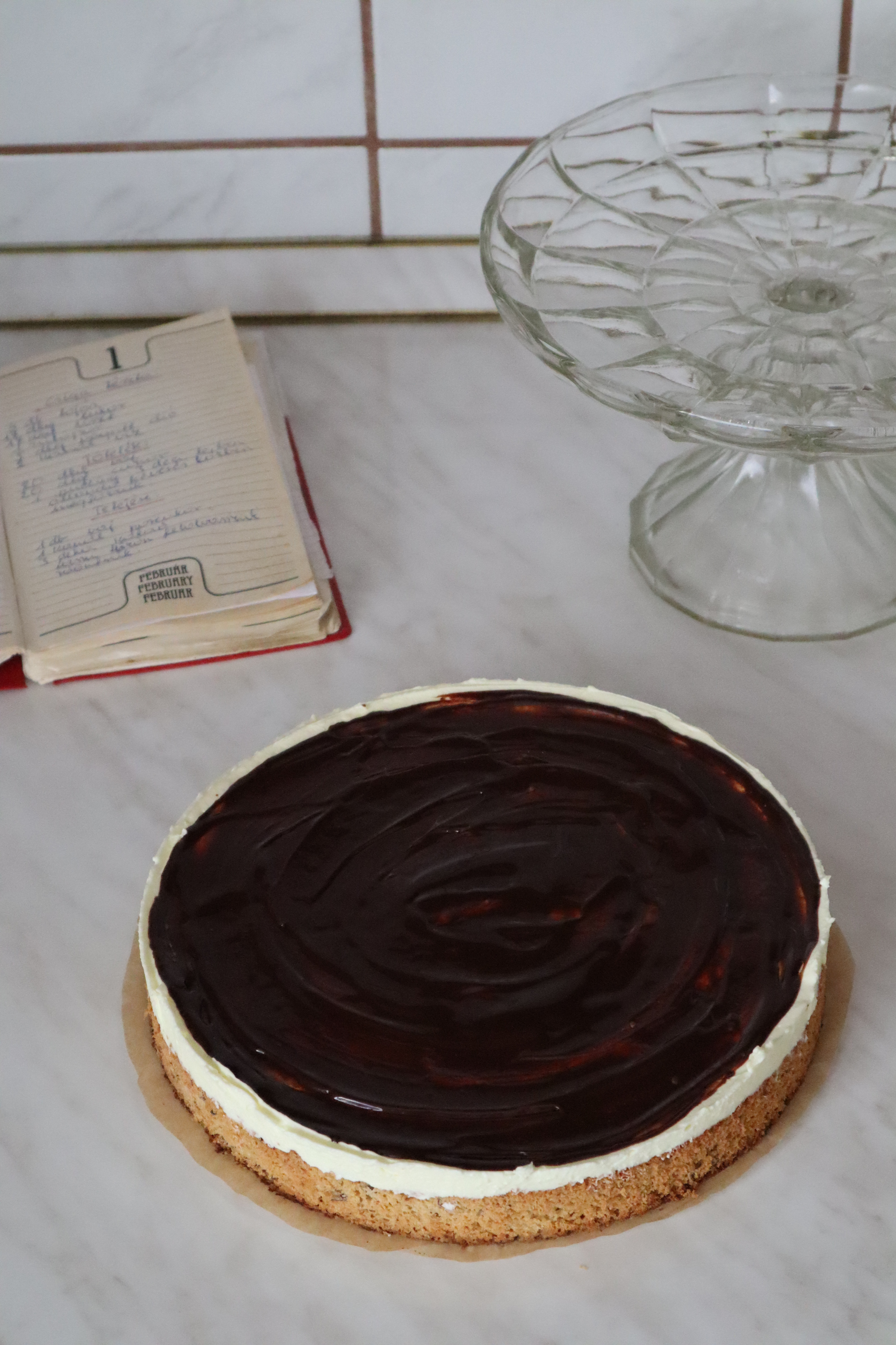 Másnap elkészítjük a tetejére a csokoládét, vízgőz fölött felolvasztjuk a kockáira tört csokit belemérjük az olajat, elkeverjük és szépen elkenjük a sütemény tetején. Vagy csokoládé mázat készítünk, nekem a legkedvesebb máz receptem a diós zserbó máza, hogyha a kakaóporos, vajas verzióra szavaztok, akkor ezt próbáljátok ki.