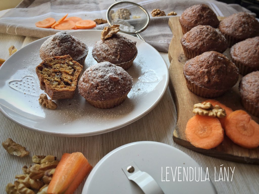 Lassan jön a tavasz, ezzel együtt elkezdődik a szokásos jobban odafigyelünk a táplálkozásunkra időszak. Tehát.. amiből csak lehet kitúrom a fehér lisztet és zöldséget-gyümölcsöt eszünk mindenhez. Gyors tízórai gyanánt, plusz édesség utáni sóvárgásaink kielégítésére.. isteni sárgarépás muffinokat készítettem!! Eszméletlenül puhák lettek, rögtön be is vágtam belőle kettőt! Nagyon fincsi!❤ Szóval a muffinok már a tavaszi alakformálás jegyében készültek el.
