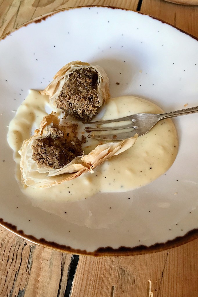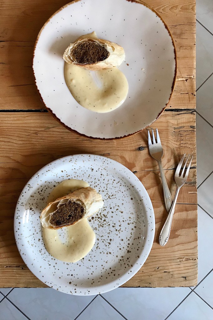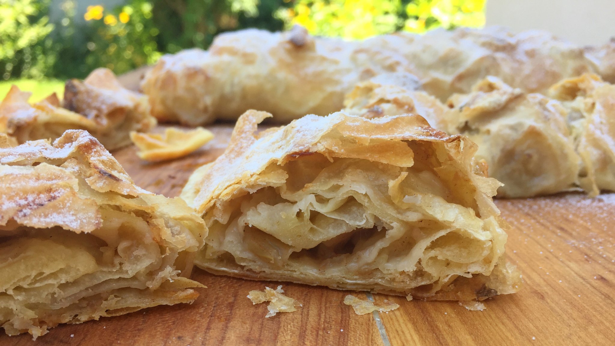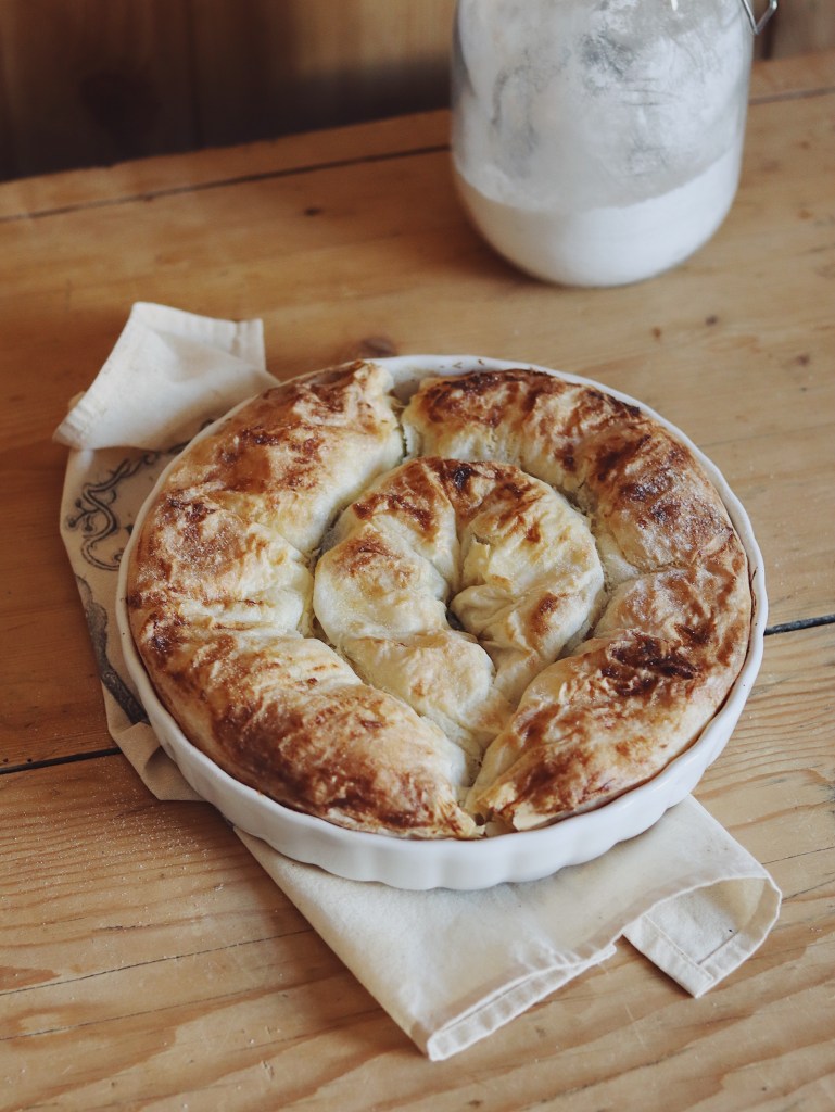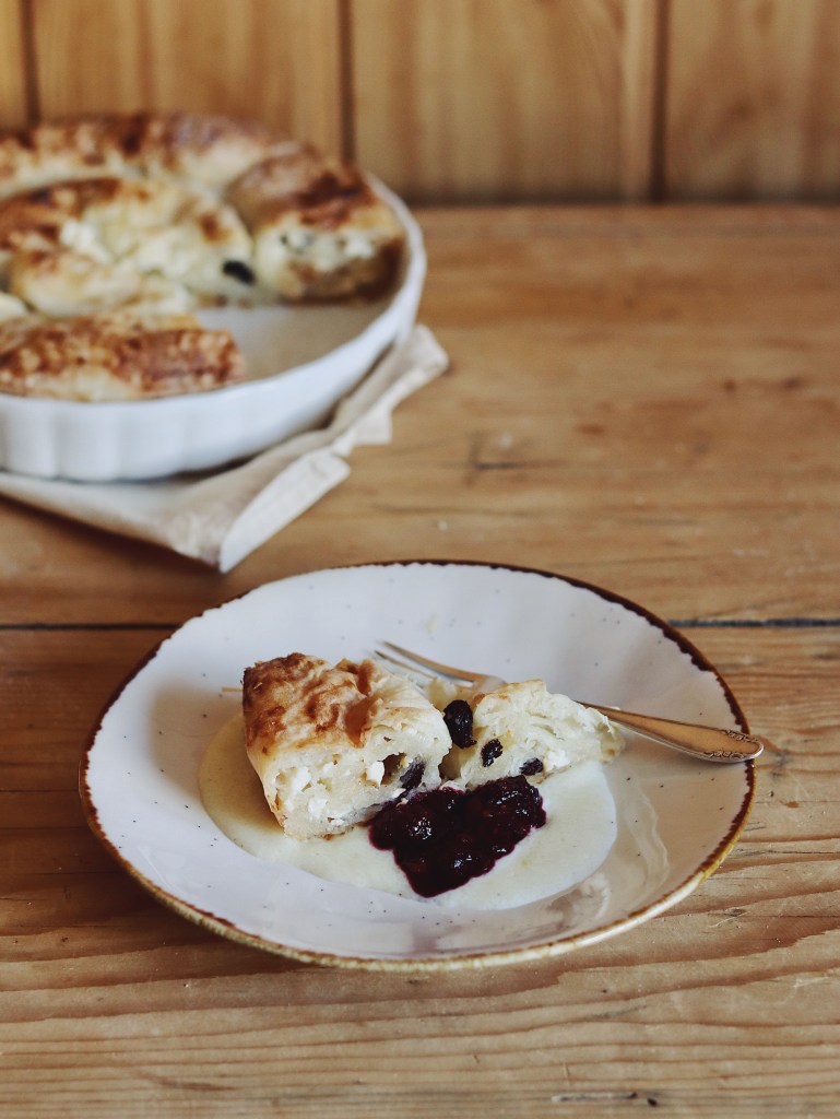 Süteményünk tipikusan az ‘amilyen egyszerű, annál finomabb’ desszert kategóriába tartozik. Úrég csak úgy tömtük magunkba, annyira szerettük. A sima egyenes rétes helyett belecsavartam egy piteformába, mert a múltkor a túrós rétes kifolyt és kiszakadt, esztétikailag nem volt teljesen korrekt, de így, ezzel a verzióval tökéletes.