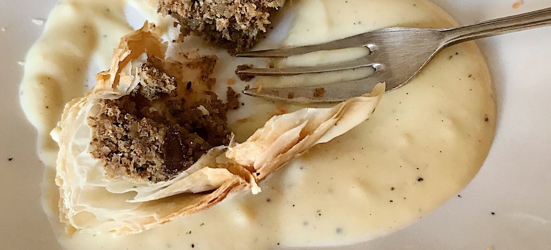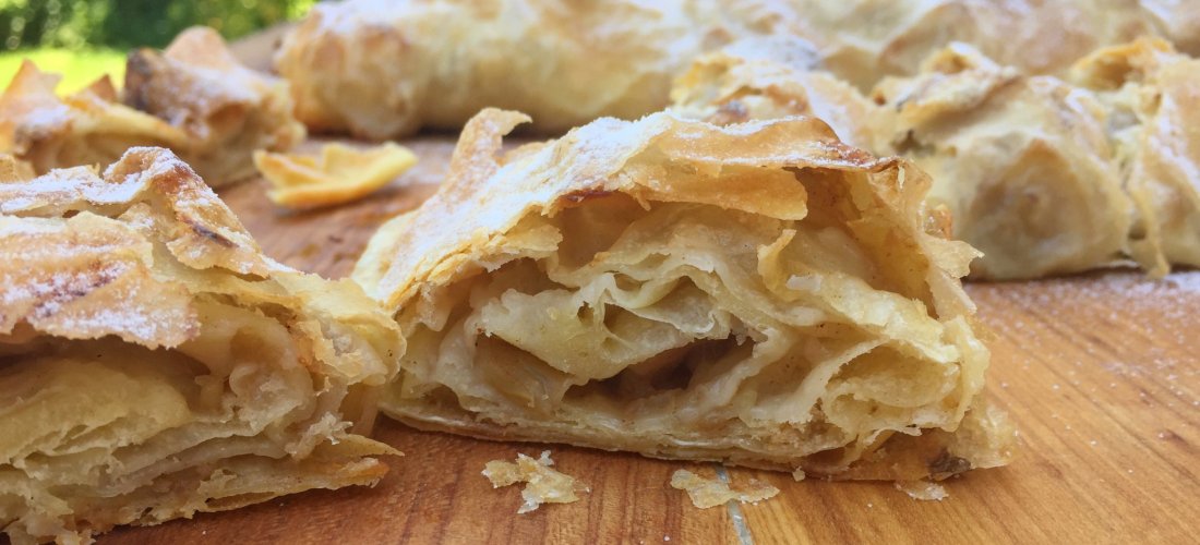 Süteményünk tipikusan az ‘amilyen egyszerű, annál finomabb’ desszert kategóriába tartozik. Úrég csak úgy tömtük magunkba, annyira szerettük. A sima egyenes rétes helyett belecsavartam egy piteformába, mert a múltkor a túrós rétes kifolyt és kiszakadt, esztétikailag nem volt teljesen korrekt, de így, ezzel a verzióval tökéletes.
