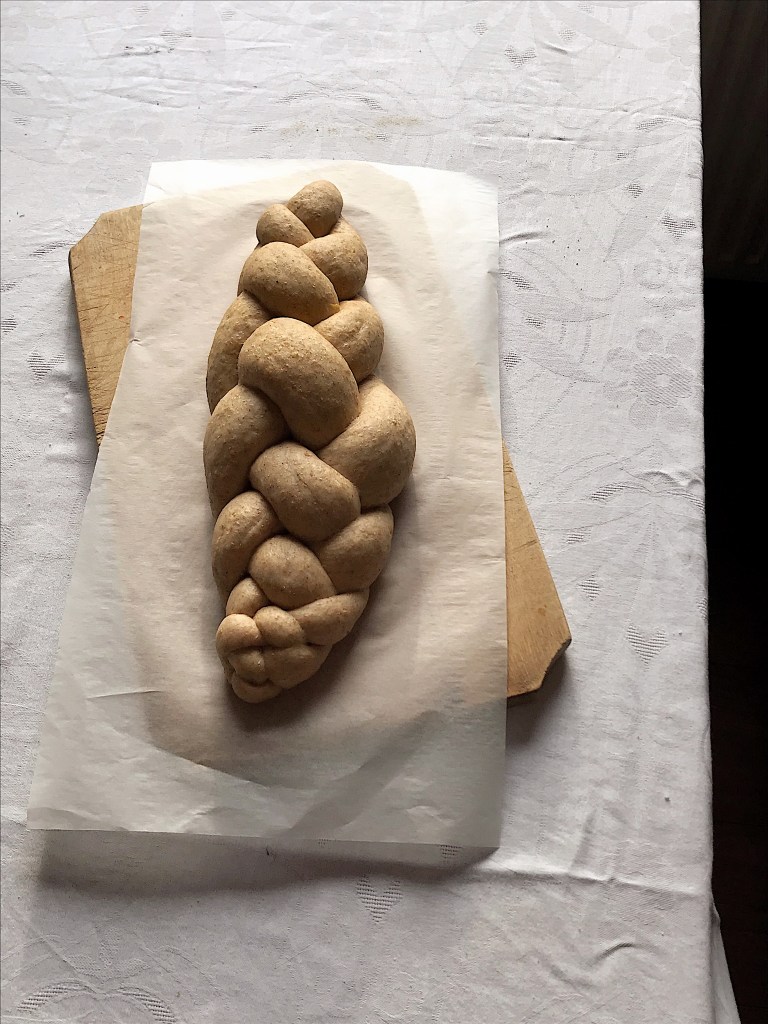 Fonás Mostanában mindig a legegyszerűbb szövött négyes fonást alkalmazom, ehhez nem kell videó, hanem fejből megy! Sütőpapíron fonok, hogy könnyebb legyen átemelni a tepsire. Szálvégeinél összeillesztek 4 fonatot. Mindig a jobb szélsővel kezdek és balra haladok, fent-lent-fent fonva. Megint a jobb szélső fent-lent-fent vagy fordítva, most nincs előttem, tök egyszerű, mint mikor szövőszéken, vagy kis kézi szövőfán szőttem kézműves táborokban, amikor kicsi voltam. Lekenem kicsit felvert egész tojással. Letakarva kelesztem durván 30 percet, felénél már kapcsolom a sütőt 190 fokra. Sütés előtt közvetlenül, ismét lekenem tojással. Lehetőleg ne szilikonos ecsettel dolgozzunk, mert sajnos nem lehet vele szépen kenni.