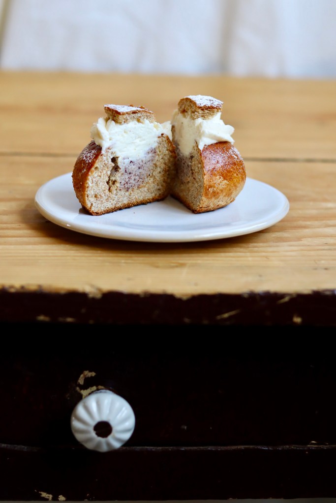 Őrült rég terveztem már semlort sütni, mert annyira elképesztően finomnak tűnt a képeken, és nem csak tűnik, hanem az is! Hagyományos svéd édes péksütemény, egy kelt tészta, aminek a belsejét kivájjuk, ide kerül egy tömény mogyorós, bár eredetileg mandulás töltelék, a tetejére ízesített habtejszínt nyomunk, kalapját porcukorral szórjuk. Maga a csoda. Teljes kiőrlésű liszttel készítettem. A receptet a Bonamival közös együttműködéshez álmodtam meg, csodás tányérjait, textíliáit láthatjátok a képeken. Összesen 3 receptet készítettem, ezeket mind a blogon, mind a Bonami oldalán megtaláljátok.