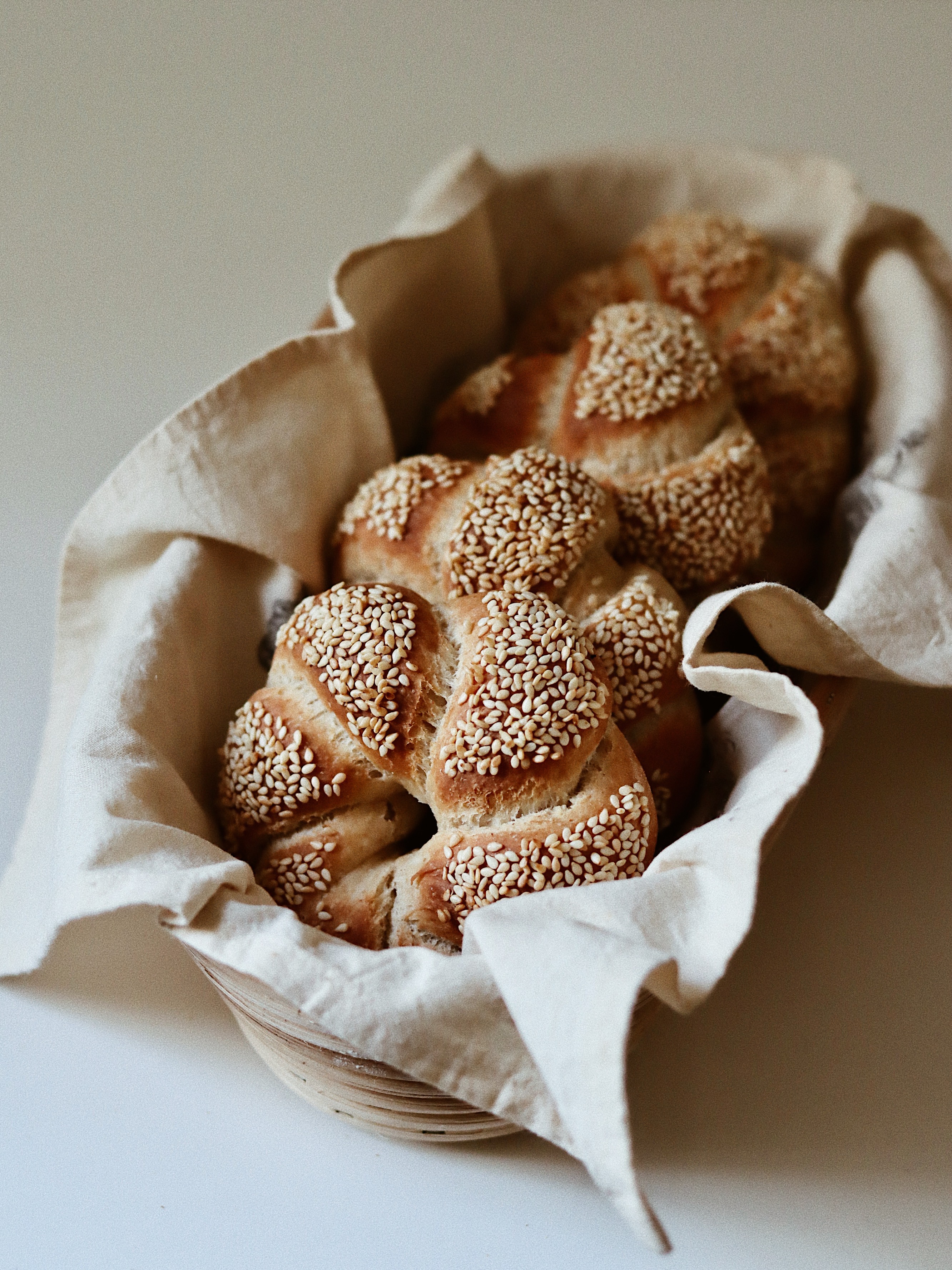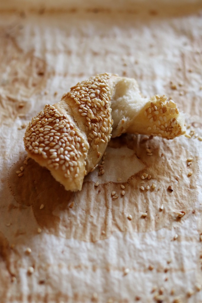 Most csak egyszer etettem kovászt ehhez az operációhoz (1:3:3 arányban, tehát 110:7= 15g kovász, 45 g liszt, 45 ml víz és egy kis 1/2-ed kávéskanál szárított élesztő hozzáadásával), mert csak reggel konstatáltuk, hogy te jó ég, megettük a fagyóból az összes simitet, csinálni kell valamit! És mivel imáááááádtam a pirított szezámmagot és ezt a ropogós zsemlés történetet, egyértelmű volt, hogy megint elkészítem. Van egy kis kattanásom szezámmaggal kapcsolatban, ugyanis imádom. Bármi jöhet, amiben van, vagy amin van. – Kovász nélkül is elkészíthetitek, akkor duplázzátok az élesztő mennyiségét tehát 18-20 grammot használjatok hozzá, de nekem ez a lenti arány veszettül bejött, mert a csak élesztős dolgok hajlamosak némi élesztő ízt produkálni, no ennek semmmmmilyen ilyen mellékzöngéje nincsen, ezért jött be eszméletlenül, ugyanakkor egy nap alatt lezongorázható. Reggel etettem a kovászt, estére kisült a simit, tehát időben is tök korrekt, mert nem kell 3 nap, mint egy bagettnek. – Készülhet BL80, BL55 lisztekből, vagy ezek keverékéből is. Második alkalommal 1/5-öd része teljes kiőrlésű liszttel készült. Teljesen nyugodtan szabadon variálható, arra figyeljünk, ha túl magas a tk lisztek aránya, több nedvességet nyelnek el, így nagyon minimálisan ugyan, de több vízre lesz szüksége a tésztának. – Szuperül fagyasztható, amint kihűlnek, mehetnek is le. Több infó: Péksütemények, kenyerek fagyasztása c. bejegyzésemben. – A melasz elhagyható, így gyorsítható a művelet. Én bioboltban szereztem be annak idején, a bajor rozskenyerekhez, kornspitzhez kifejezetten ajánlott ízorgia!