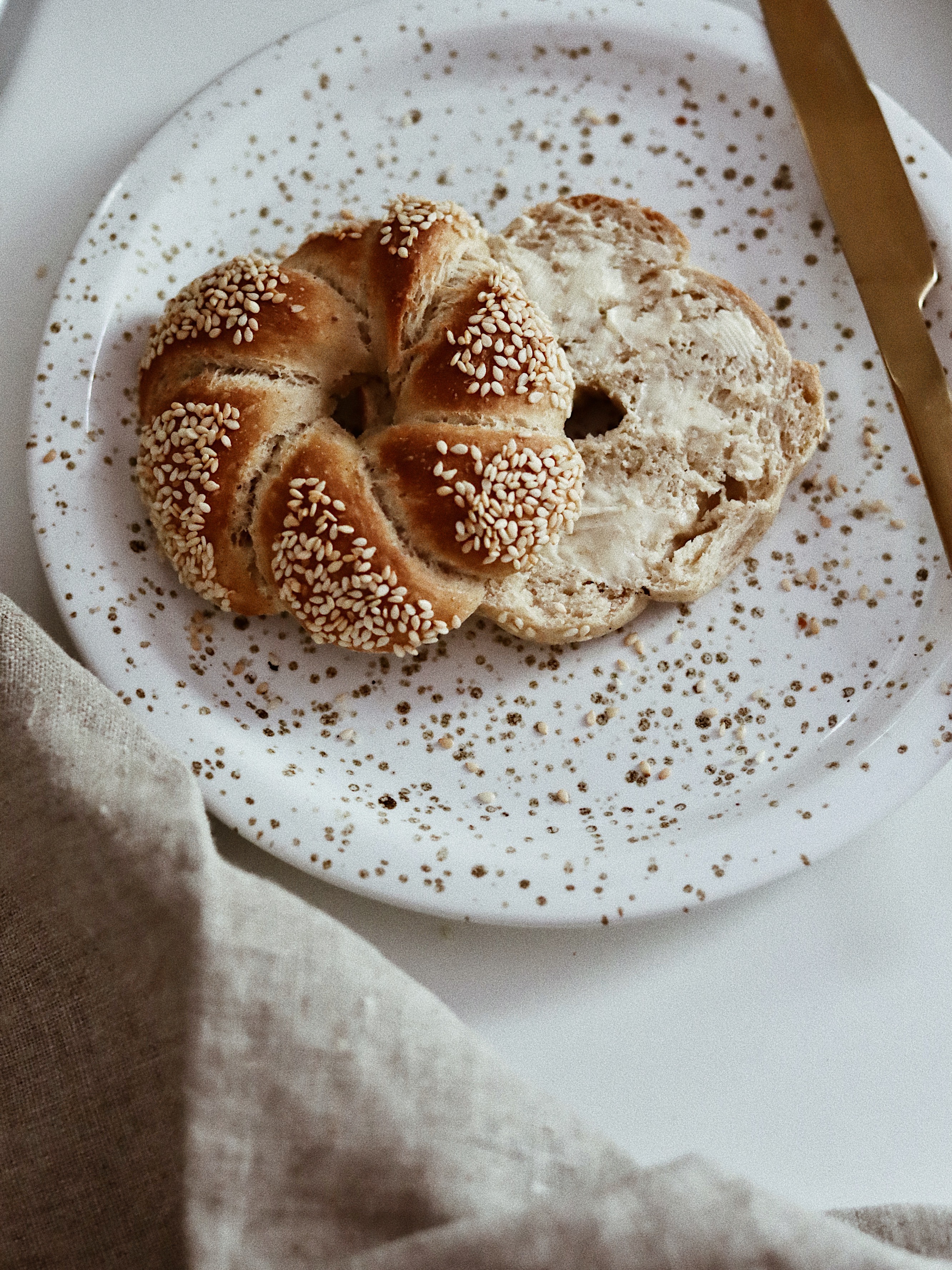 Első ránézésre mondjuk teljesen bagel, csak csavarva, ámde.. ellentétben a bagel vajas-tejes kalács tömörségű tésztájával, a simit vízzel és olajjal készül, mint egy sima pék anyaghányad szerinti bolti zsemle, tehát így lesz tényleg szuper ropogós. Na meg a spricceléstől, de zömében a tészta víztartalmától.